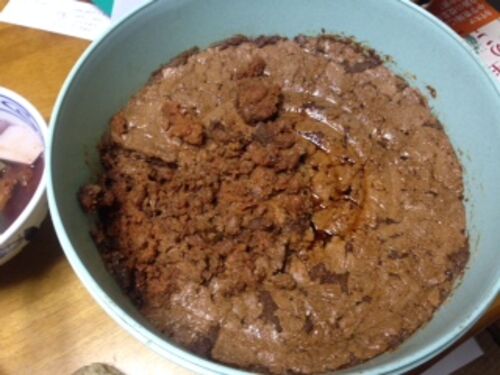 2年前の手前味噌が無くなったので、1年前に作った味噌を開けて食べてみた。米麹の味噌は食べやすく美味しい、豆麹の味噌は作るとき間違えて塩を倍以上入れてしまったので、流石に塩辛かった。これはもう一年寝かせておこう。 塩辛い豆味噌。 程よい米麹味噌…